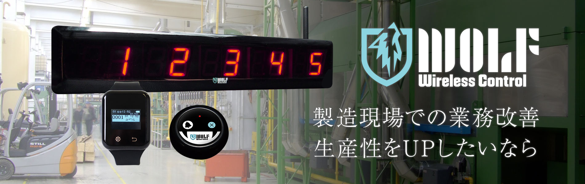 「ワイヤレスコントロールWOLF(ウルフ)」 は、ライン責任者の呼び出し、メカニック対応、フォークリフト要請など、現場で日常的に発生する“今すぐ来てほしい”という情報を、シンプルかつ確実に届ける無線呼び出しシステムです。